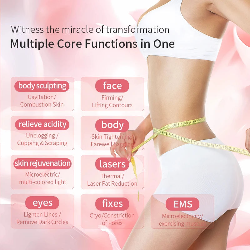 Máquina Multifuncional 9 em 1 - Cavitação 40K Radiofrequência Vácuo Laser Ultrassónica Modelagem Corporal