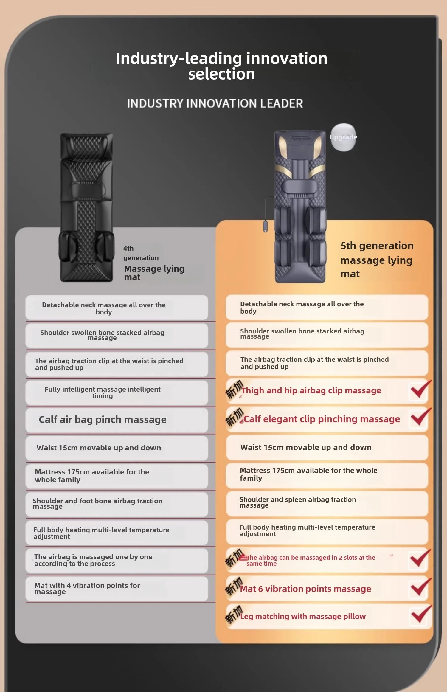 Upgrade Large Area Vibration Airbag Swing Heated Neck Massager Full Body Massage Mat Mattress Traction Lumbar with Remote Contro